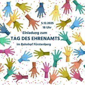 Am 5. Dezember wird der Tag des Ehrenamts weltweit gefeiert und wir in Fürstenberg machen miit! Es gibt Essen, Getränke und Austausch dazu, was Engagement hier alles bewegt.